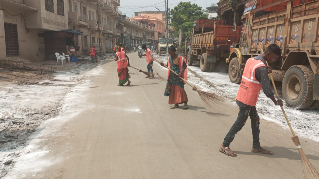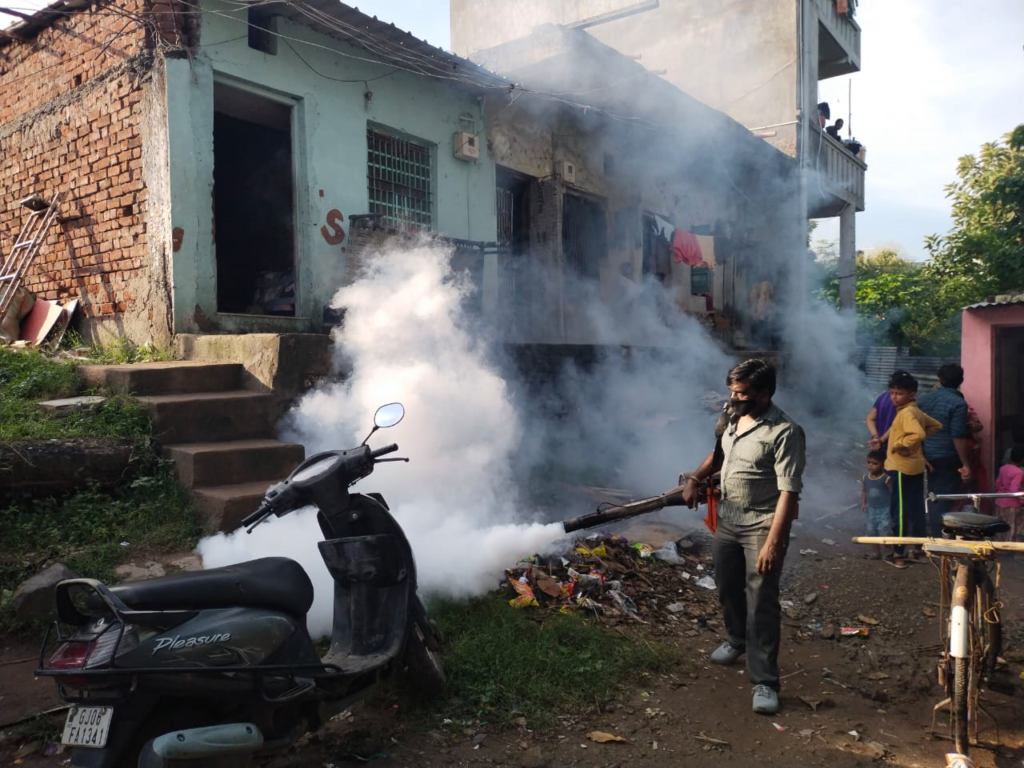 ભરૂચ નગરપાલિકા દ્વારા સફાઈની કામગીરી બાદ વ્હીકલ માઉન્ટેડ મશીન દ્વારા ફોગીંગ