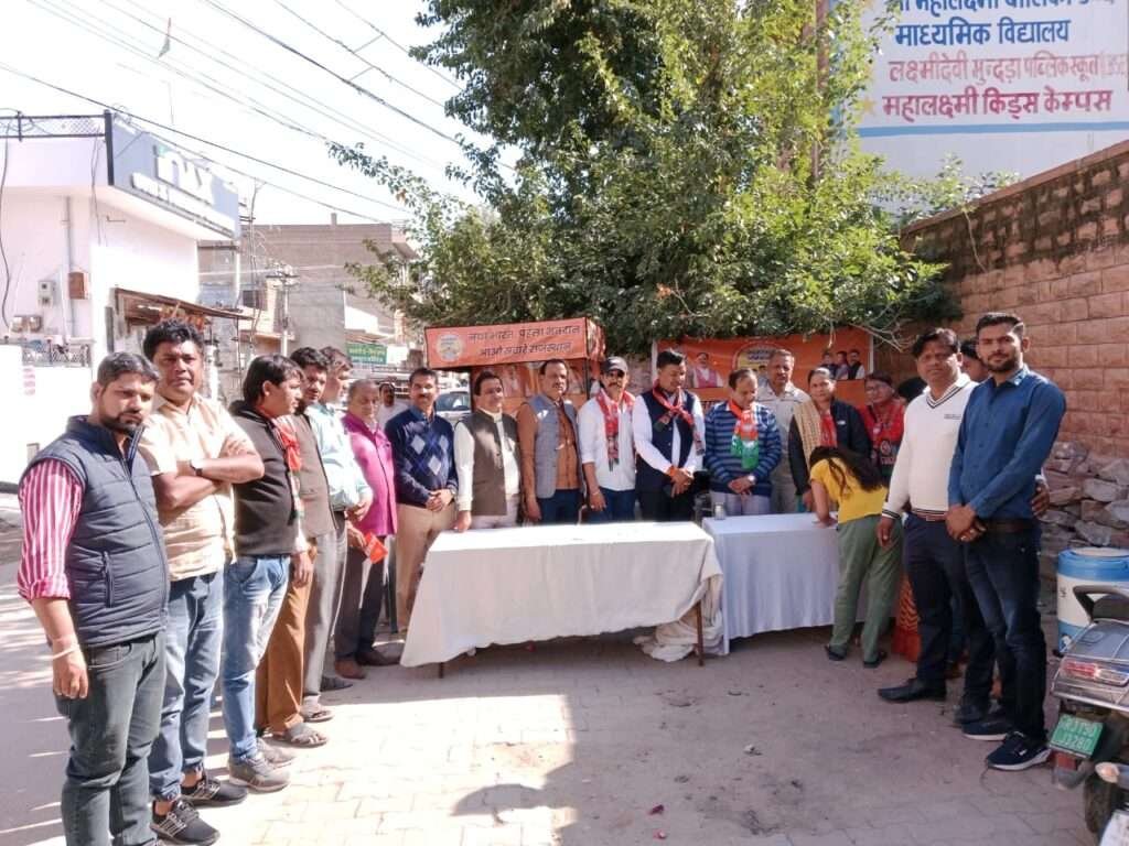 भारतीय जनता पार्टी जोधपुर शहर के जिला अध्यक्ष देवेन्द्र जोशी जी निर्देशनुसार आज शुक्रवार को प्रताप नगर मंडल का नव मतदाता संपर्क अभियान का द्वितीय चरण प्रताप नगर युवा मोर्चा के तत्वाधान में कार्यक्रम भाजपा प्रताप नगर मंडल अध्यक्ष भैरूदास वैष्णव के नेतत्व में प्रताप नगर श्री महालक्ष्मी बालिका उच्च माध्यमिक विद्यालय के बाहर में रखा। जिसके अंतर्गत 200 से ज्यादा नव विधार्थी मतदाताओं से संपर्क कर उन्हे भाजपा के पक्ष में वोट करने के लिए प्रेरित किया। ,विधार्थी वर्ग आज बड़े खुश नजर आए केंदीय बजट से उन्होंने बताया कि हम मोदी के द्वारा कल जो बजट आया उससे युवा वर्ग के लिए बहुत सारी नौकररिया दी जाएगी और शिक्षा नीति से बहुत प्रभावित हो रहे है i कार्यकम सूरसागर विधानसभा क्षेत्र प्रभारी व भाजपा जिला महामंत्री महेंद्र मेघवाल, पूर्व महापौर घनश्याम ओझा, नव मतदाता संपर्क अभियान जिला संयोजक विजय व्यास, सूरसागर विधानसभा सह सयोजक अजय जोशी ,मंडल महामंत्री ओमप्रकाश मेवाड़ा, मंडल उपाध्यक्ष, युवा मोर्चा जिला सह संयोजक सुनीता सोनगरा,मंडल सयोजक सुरजीत सिंह, राजपुरोहित,मंडल मंत्री शोभा परिहार, शक्तिकेंद सयोजक विष्णु सरगरा, चौपासनी मंडल मंत्री अंकित पुरोहित ,युवा मोर्चा के मंडल अध्यक्ष विठलेश व्यास, मंडल महामंत्री मुकेश गौड़, मंडल उपाध्यक्ष वेद प्रकाश राजोरिया मंडल मंत्री सवाई जोशी, प्रताप नगर मंडल महिला महिला की अध्यक्ष मंजू मेवाड़ा, मंडल मीडिया प्रभारी मैना व्यास, मंडल मंत्री विजयलक्ष्मी,ओबीसी मोर्चा के महामंत्री कुशल आचार्य, किशन वैष्णव ने कार्यकम मे शिरकत की।